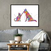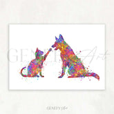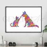 Cat and German Shepherd Watercolour Print