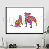 Staffordshire Bull Terrier and Cat Watercolour Print