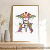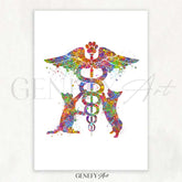 Veterinary Caduceus Medical Symbol Watercolour Print