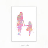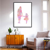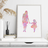 Mother and Daughter Holding Hands Watercolour Art Print